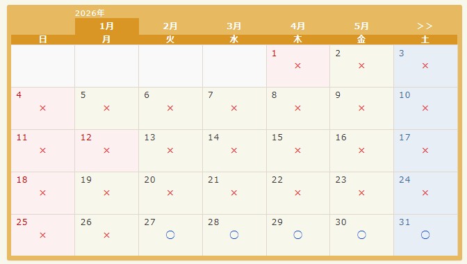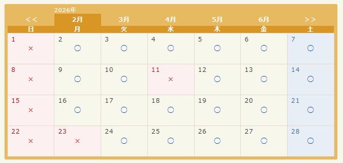※ リアルタイム反映ではございませんので、○であってもご予約いただけない場合があります。