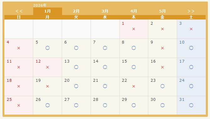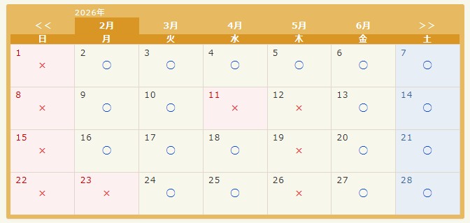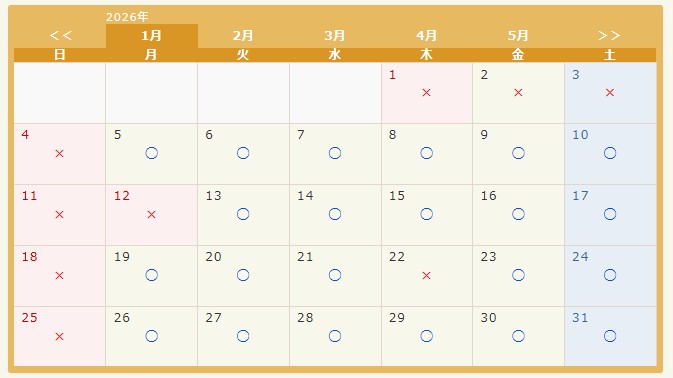 ※ リアルタイム反映ではございませんので、○であってもご予約いただけない場合があります。