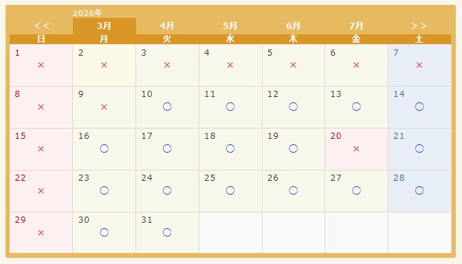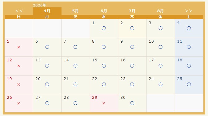 ※ リアルタイム反映ではございませんので、○であってもご予約いただけない場合があります。